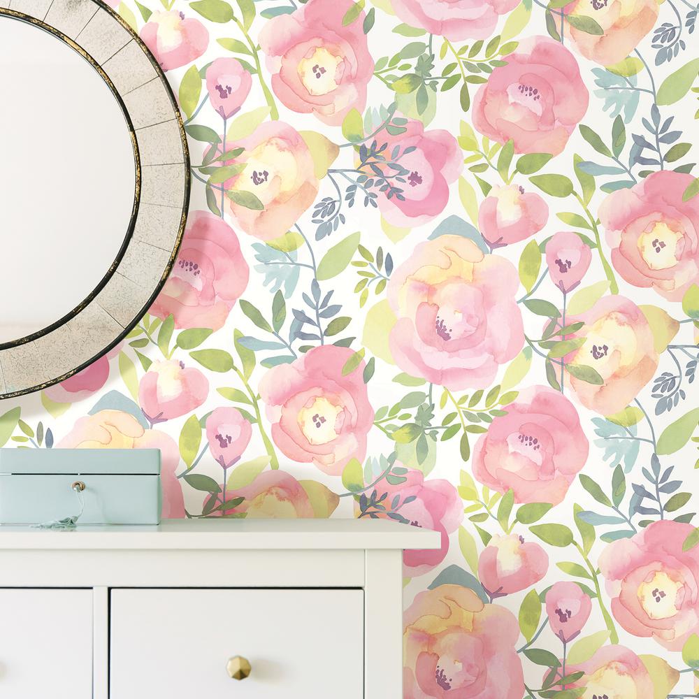 Removable Wallpaper Mural Peel Stick Nursery Wallpaper Self Adhesive Wallpaper Spring Floral Watercolor On White Background