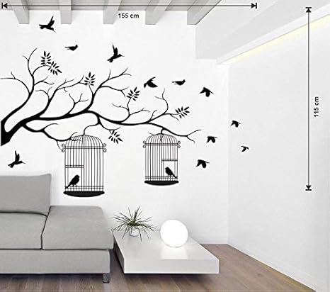 Printelligent Wall Sticker For Walls Vine With Bird Cage And Butterfly White Wall Sticker And Wallpaper Size 133 59 Cm