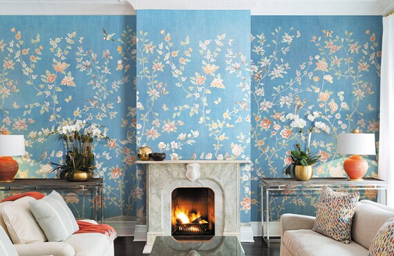 Chinoiserie Mural Wallpaper Repeat Home Decor Wall Murals Blooming Peoni And Flowers Birds Wallpaper Wall Decor Wallpaper Id2018013